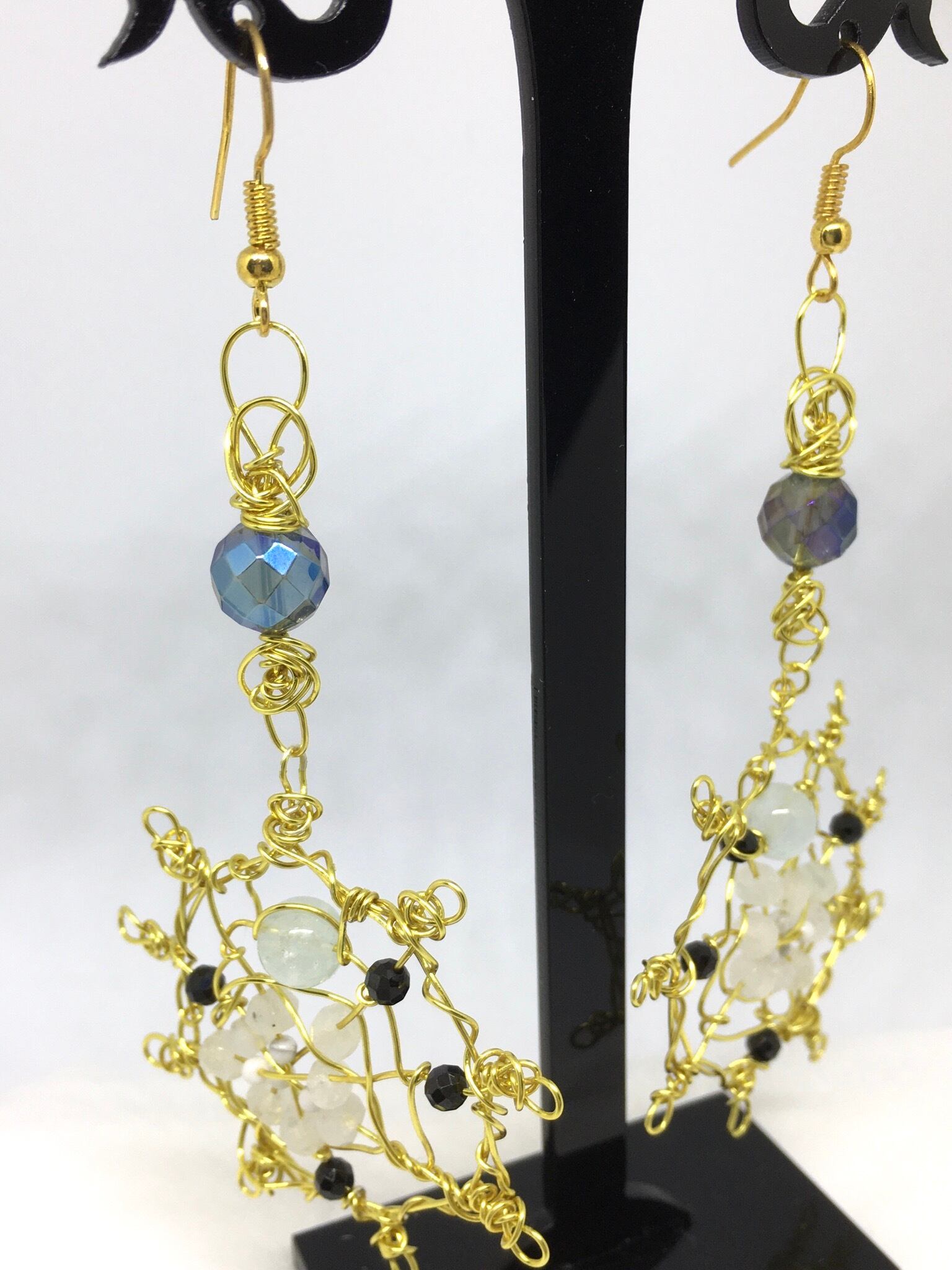 ★素材/ピアス部分シルバー925、ヨーロピアンワイヤー、レインボーブルーオーラ、アクアマリン、ブラックスピネル、ムーンストーン