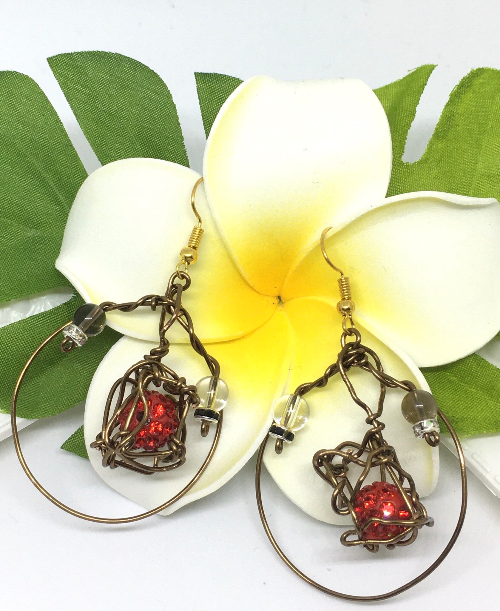 籠の中に真っ赤なクリスタルボールをいれハートにみたてその周りにクリスタルとスモーキークオーツを入れました。