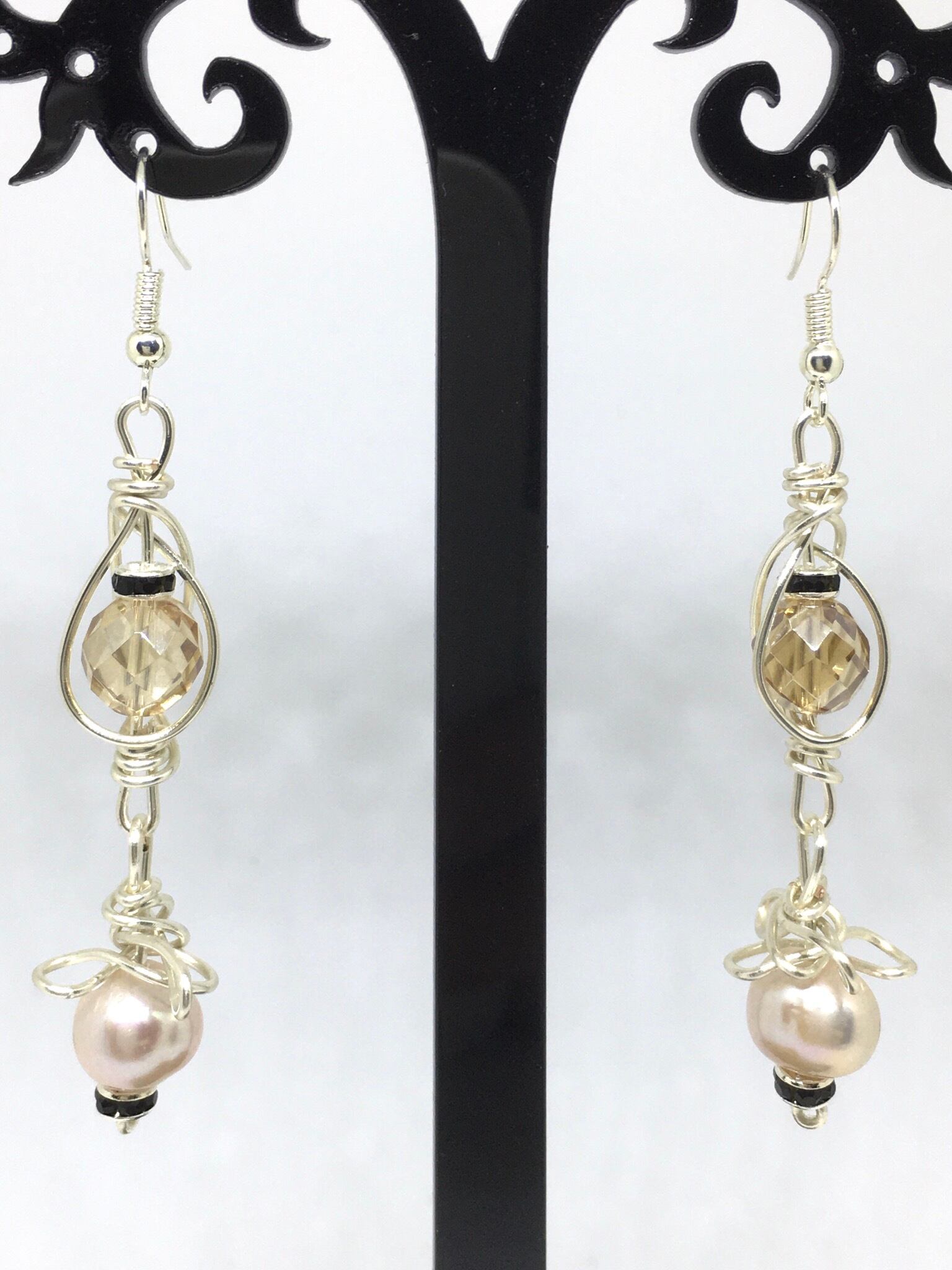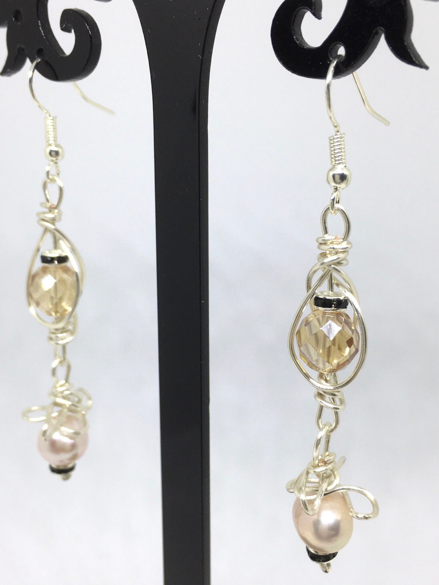 ★素材/ピアス部分シルバー925、コーティングワイヤー、シャンパンオーラ、ピンクパール