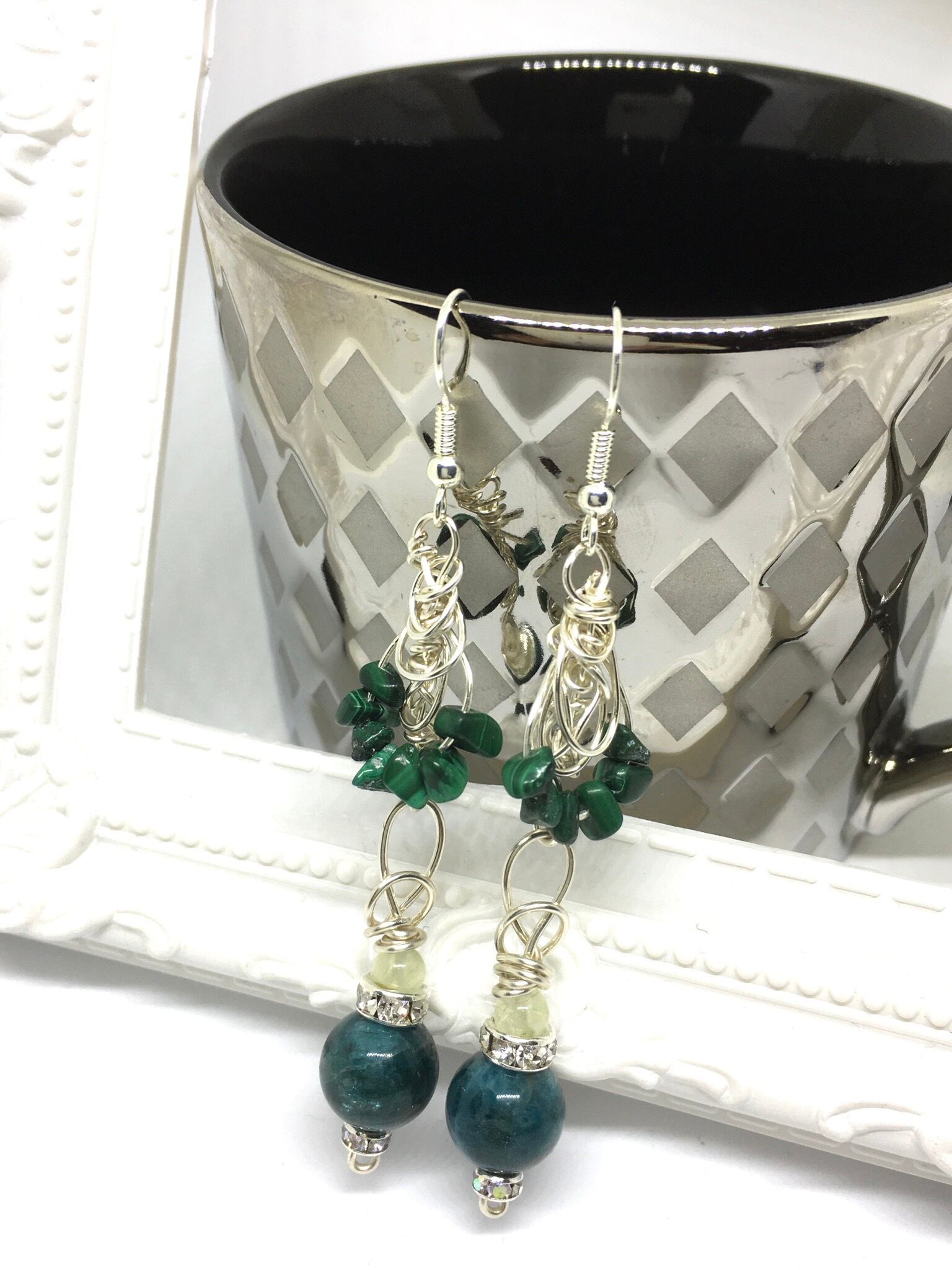 ★素材/ピアス部分シルバー925、クリソコラ。マラカイト、プレナイト